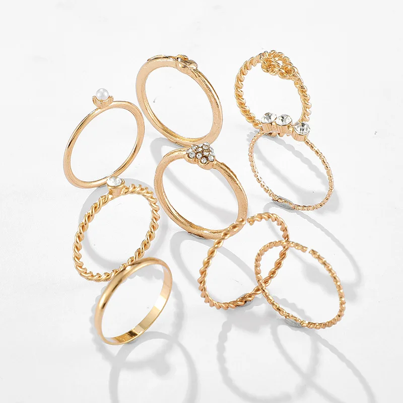 Модный подходящий ко всему набор в стиле ins кольцо Романтическая любовь геометрический простой набор золотых колец женское ювелирное изделие подарок