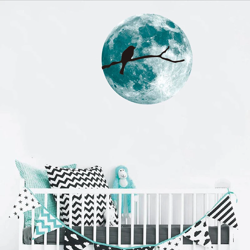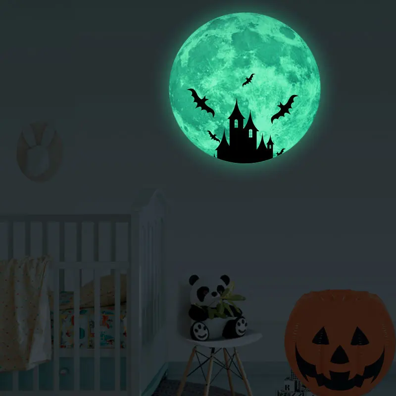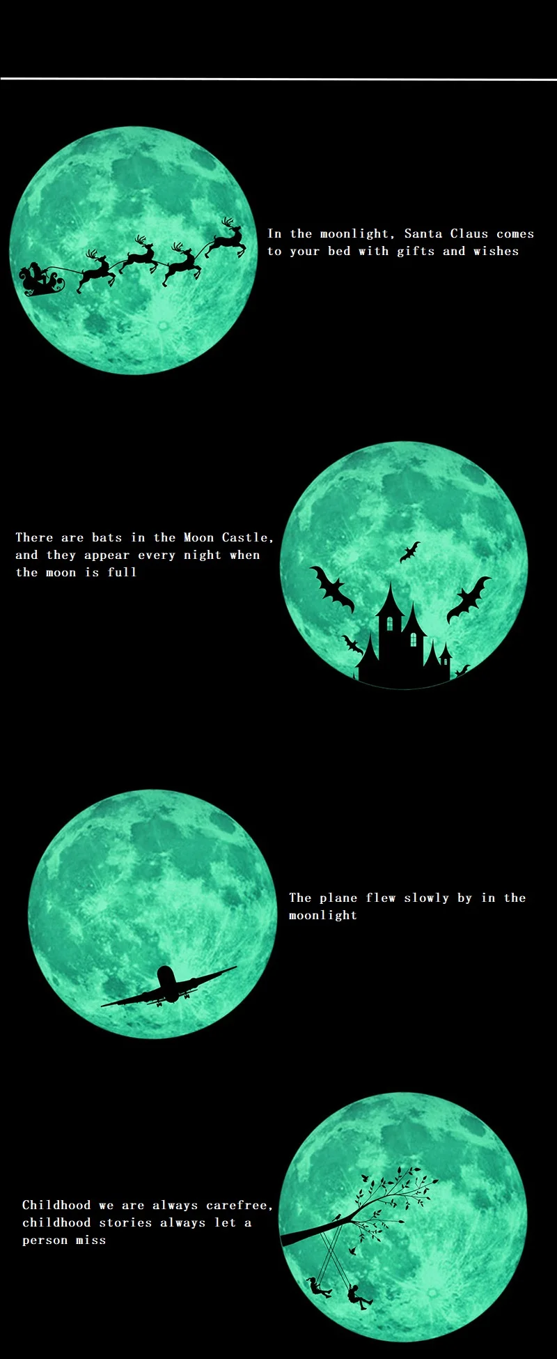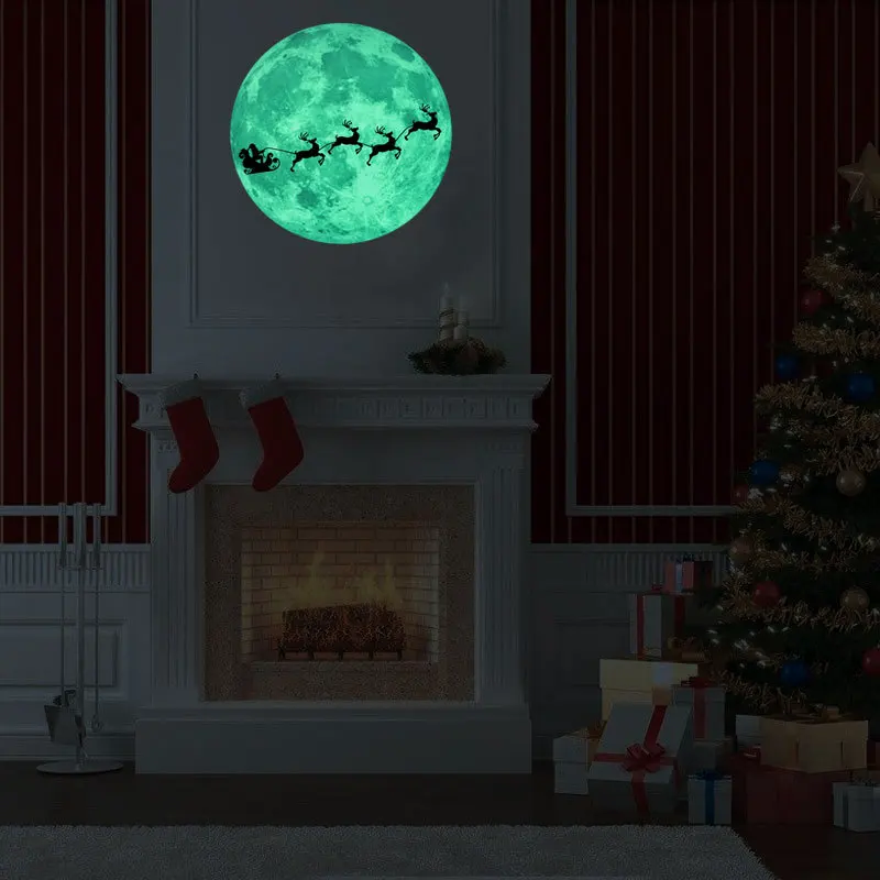 Светящаяся Луна 30 см Настенная Наклейка Сделай Сам домашний Декор водонепроницаемый 3D мультяшный замок олень Рождественский оконный светится в темноте наклейка
