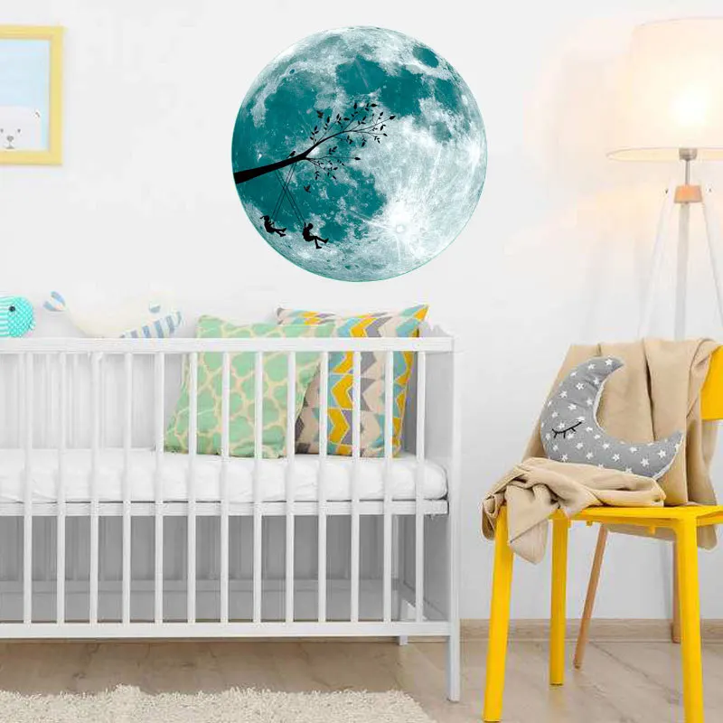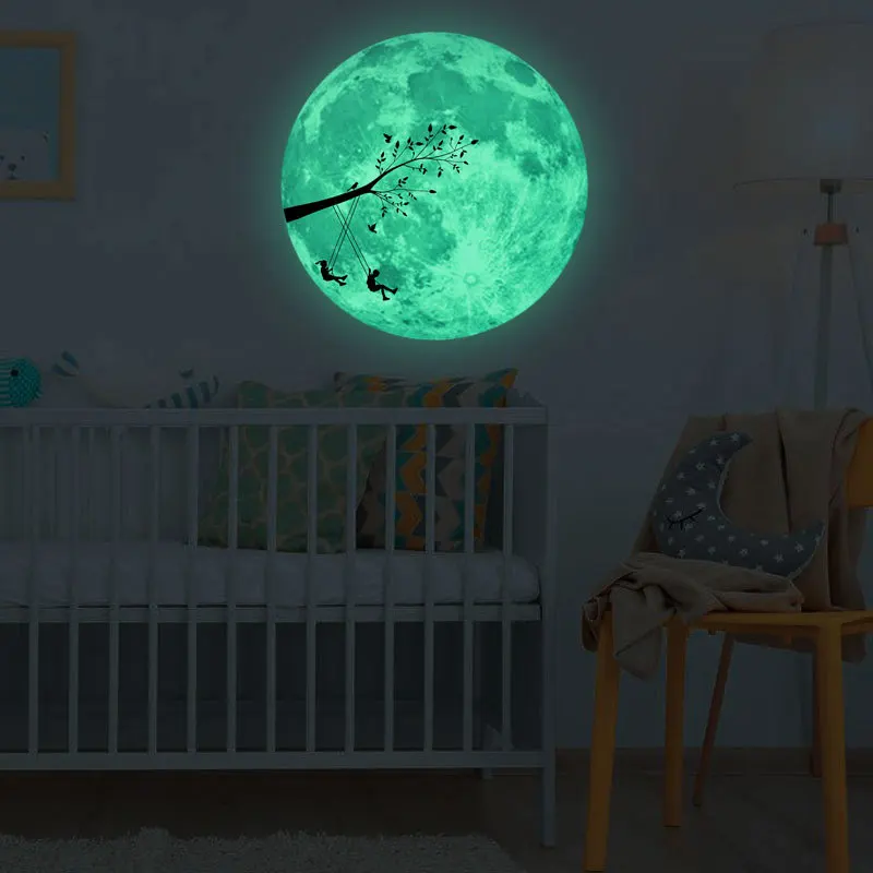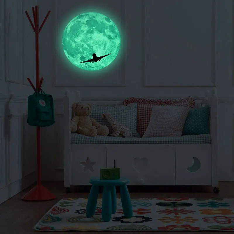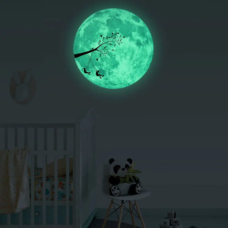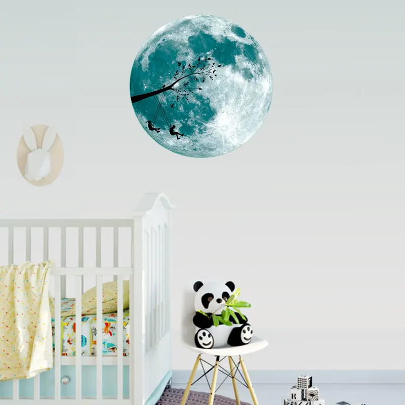 Светящаяся Луна 30 см Настенная Наклейка Сделай Сам домашний Декор водонепроницаемый 3D мультяшный замок олень Рождественский оконный светится в темноте наклейка
