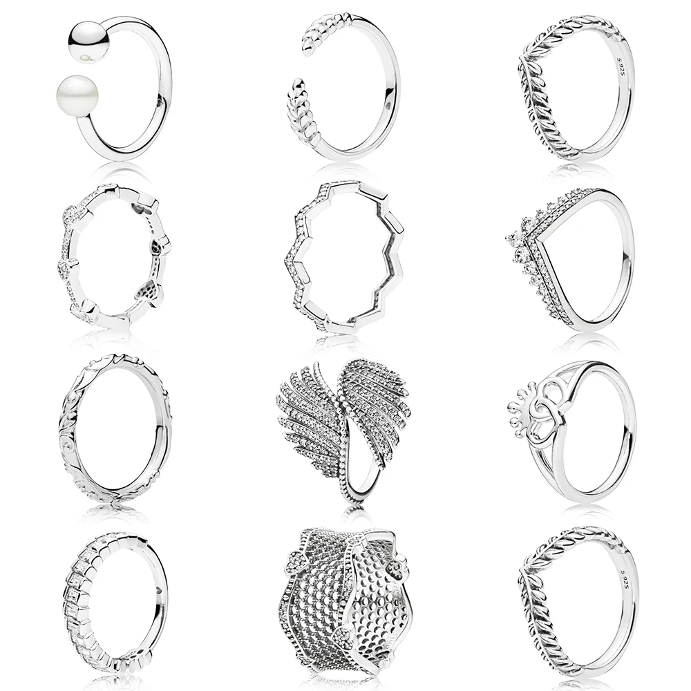 2019 Оригинальное серебряное кольцо с современным жемчугом 100% дюйма, кольцо с вечным зигзагом, кольцо с черной короной, очаровательное кольцо с сердцем