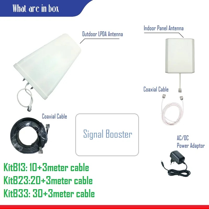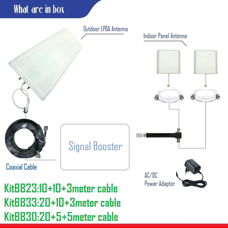 30 м 2 потолки1 усилитель (адаптер переменного/постоянного тока европейского стандарта) 1 шт.2-наружная бревенчатая антенна 1 шт.3-комнатная потолочная антенна комплект из 2 предметов4-Coxial кабель 20 метров 1 шт5-Coxial кабель 5 метров 2 штРазветвитель 6- 1-2 шт.Соединитель моста 7 нм 1 шт.Поддержка набора с высоким коэффициентом усиления и длины кабеля, пожалуйста, свяжитесь с продавцом