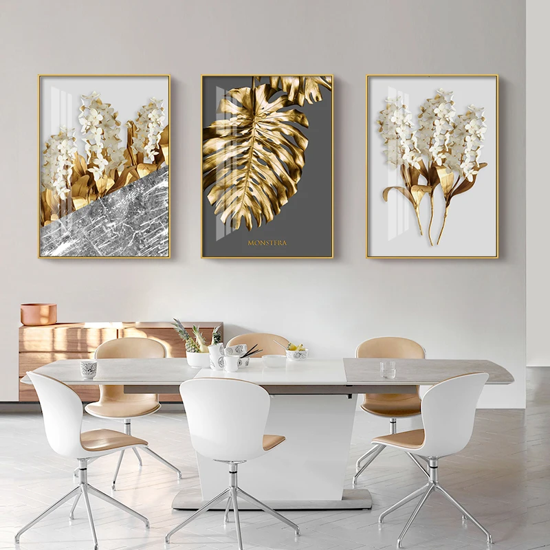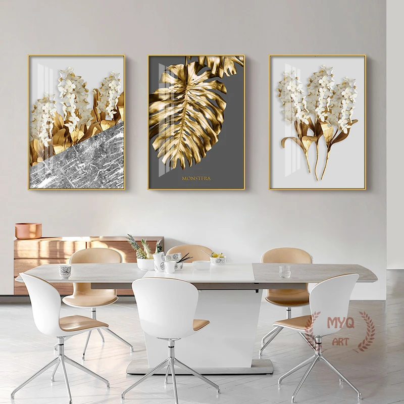 Позолоченная картина с золотыми цветами в скандинавском стиле, наст...