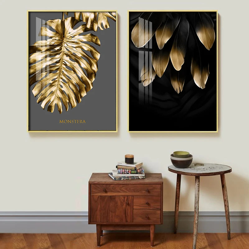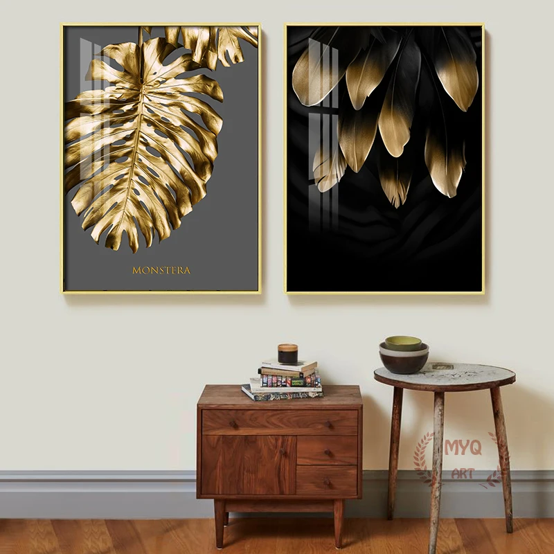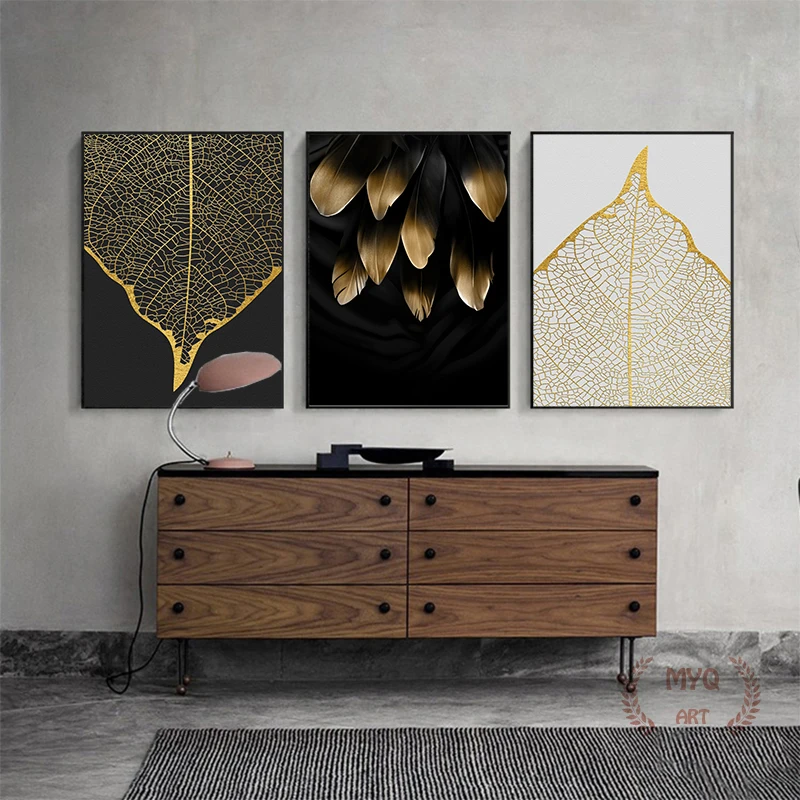 Скандинавский холст, абстрактная живопись, принт с золотыми перьями...