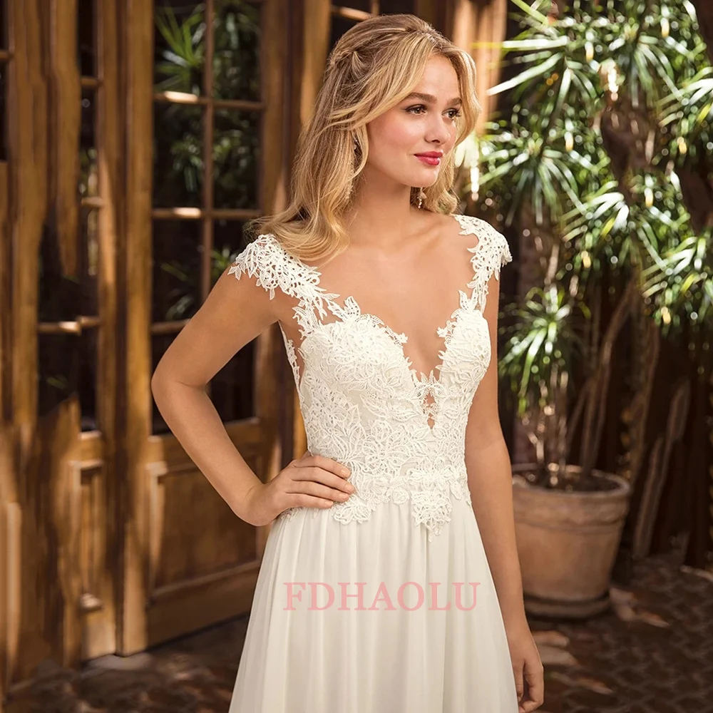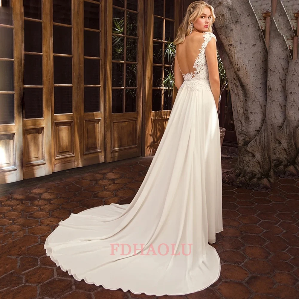 Свадебное платье FDHAOLU FU24 2021, кружевное богемное платье невесты с разрезом сбоку, сексуальное свадебное платье с аппликацией, индивидуальный пошив