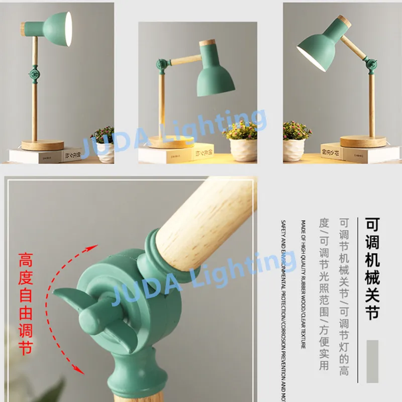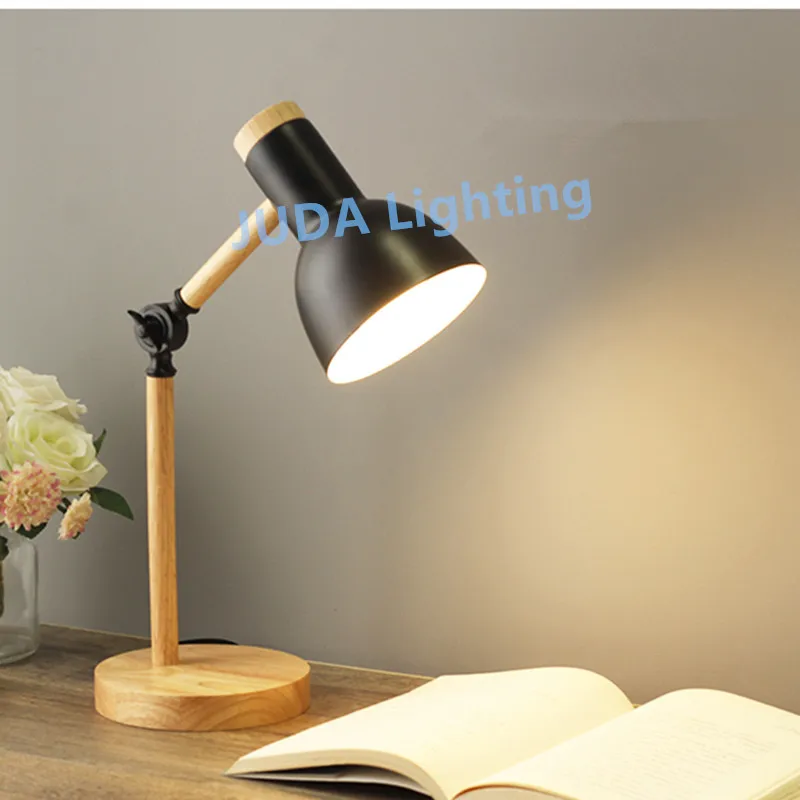 Настольная лампа E27 в скандинавском стиле с защитой глаз, деревянное освещение для учебников, кабинета, спальни, детской, гостиной, светильник для чтения, светодиодная настольная лампа