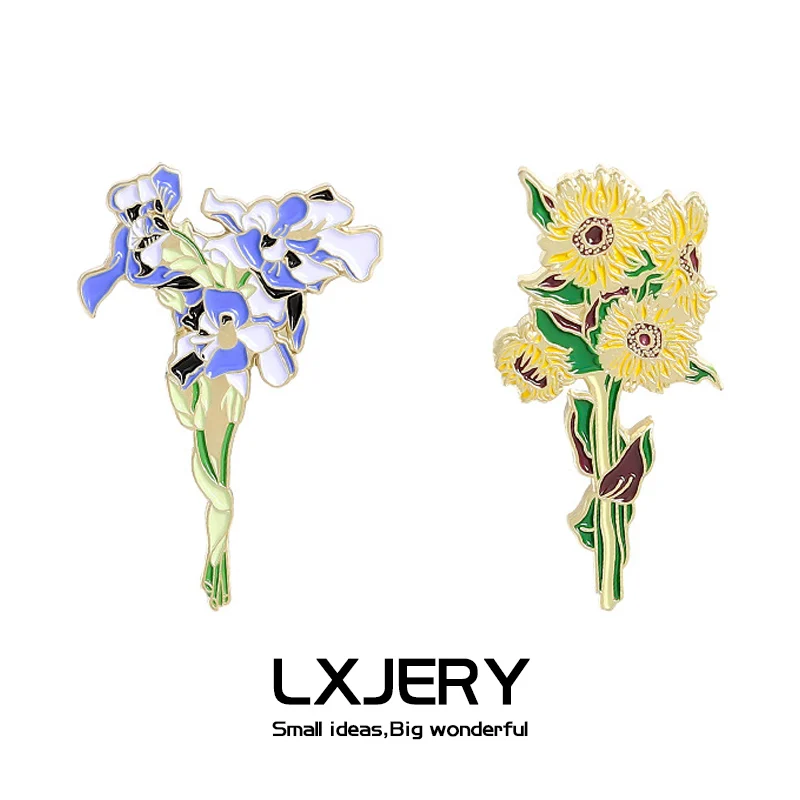 LXJERY Ван Гог Картина маслом мультфильма Pin Ирисы подсолнухи Броши рубашка с лацканами сумка Симпатичный значок мультфильм, ювелирное изделие в подарок для друзей
