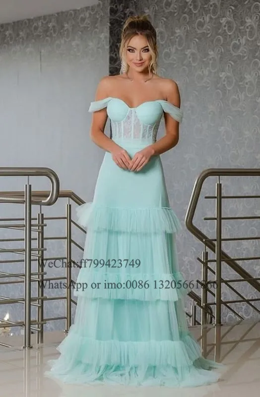 Элегантное вечернее платье с открытыми плечами, длинное ТРАПЕЦИЕВИДНОЕ платье с открытой спиной, Многоярусное Тюлевое платье для выпускного вечера, 2021