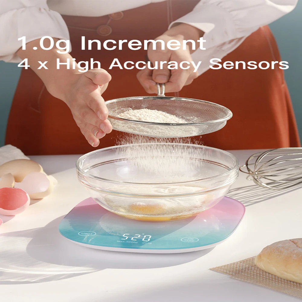 -Ультра тонкий 3 мм закаленное стекло Цифровые красочные кухонные весы