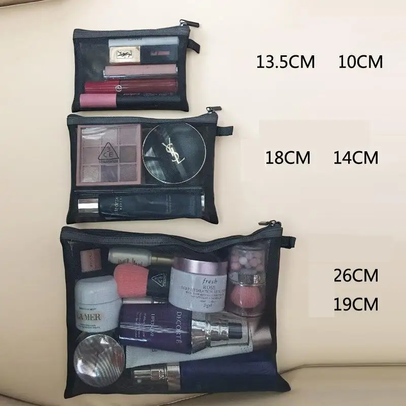 Простая модная сетчатая косметичка для женщин, набор SML, косметичка, сумка для губной помады, дорожный органайзер, органайзер для косметики, косметичка