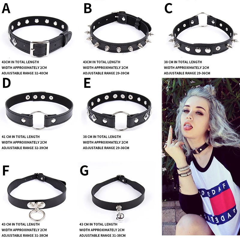 Сексуальный панк ошейник-чокер, кожаный чокер для косплея, готическое ожерелье для женщин, аксессуары Harajuku, Спайк, заклепки, Порно