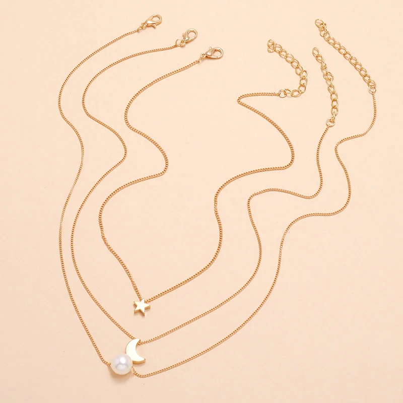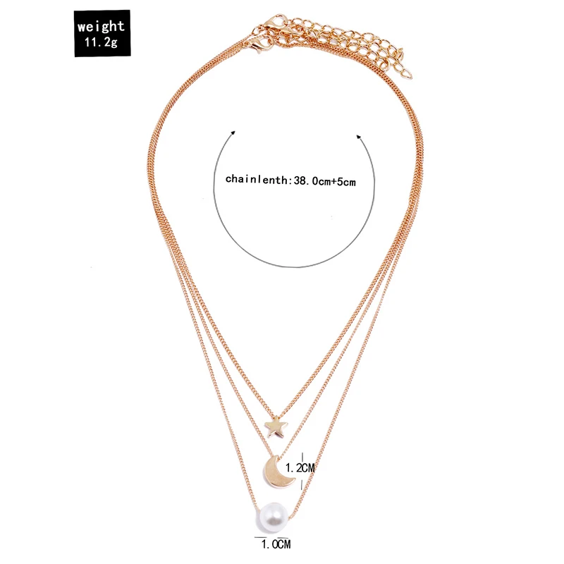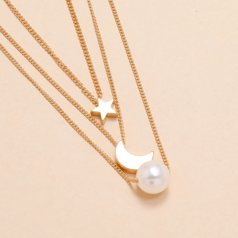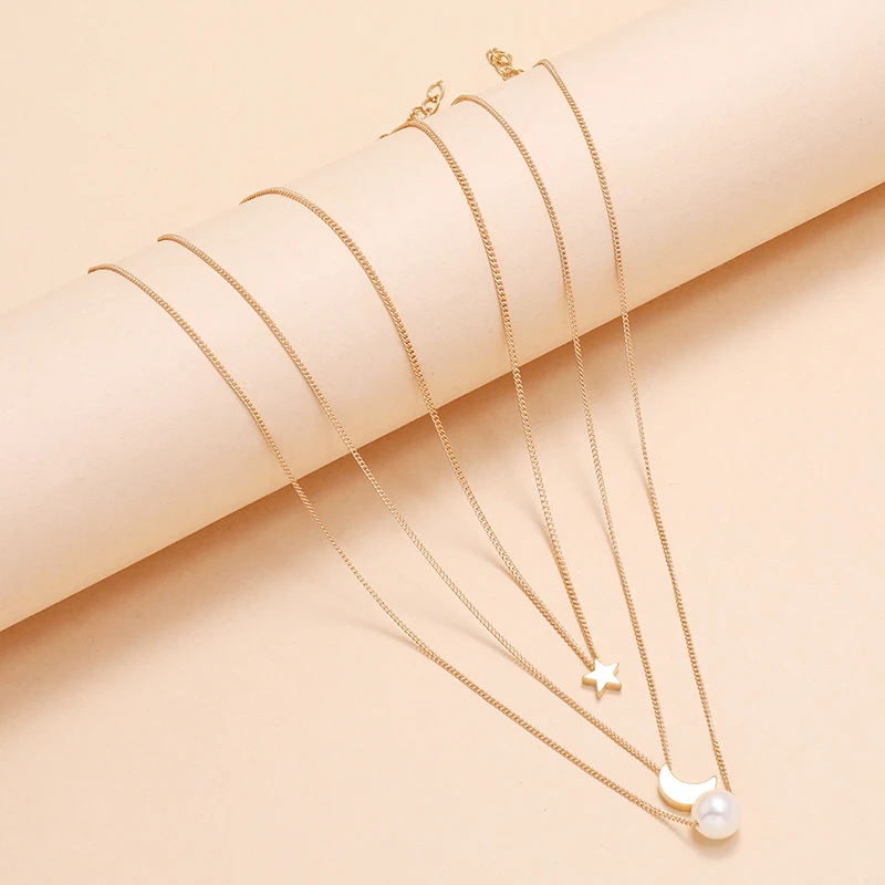 "YADA" Золотая пятиконечная звезда с принтами звезд и Луны цепи представлены ожерелье, нержавеющая сталь, для женщин, сплав, слоя ожерелья из жемчуга, ювелирные изделия, ювелирные изделия ожерелья SE200058
