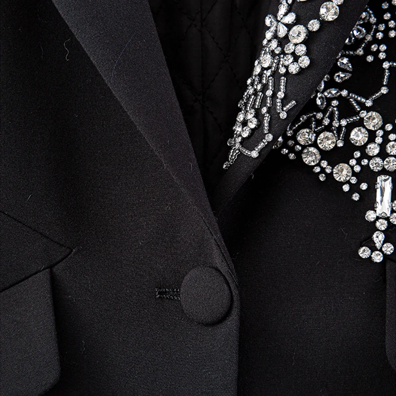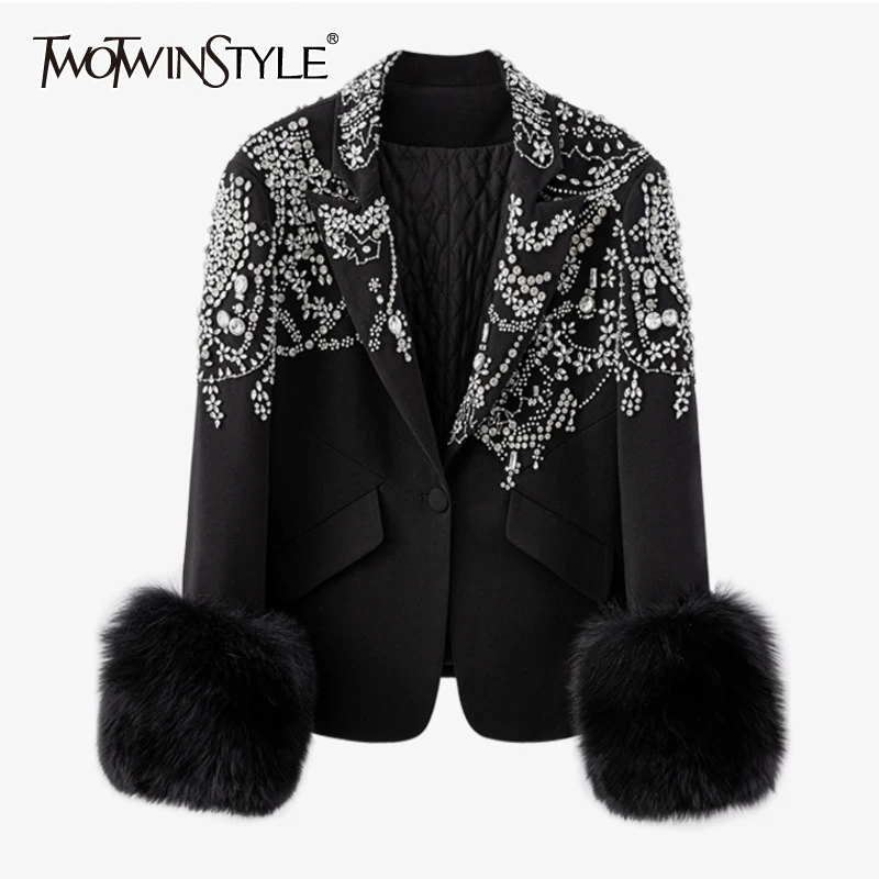 Женский блейзер TWOTWINSTYLE, черный лоскутный блейзер с манжетами и бриллиантами, повседневная одежда с длинным рукавом, 2020