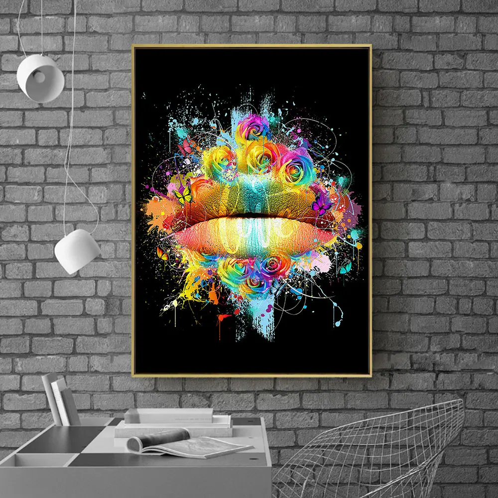 AHPainting изображением животного Рисунок Живопись для губ Wall Art...