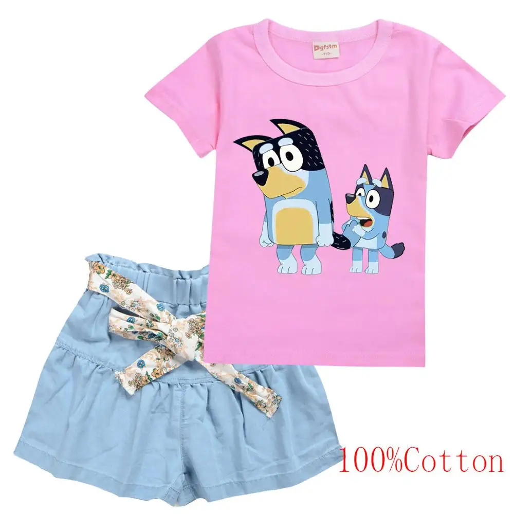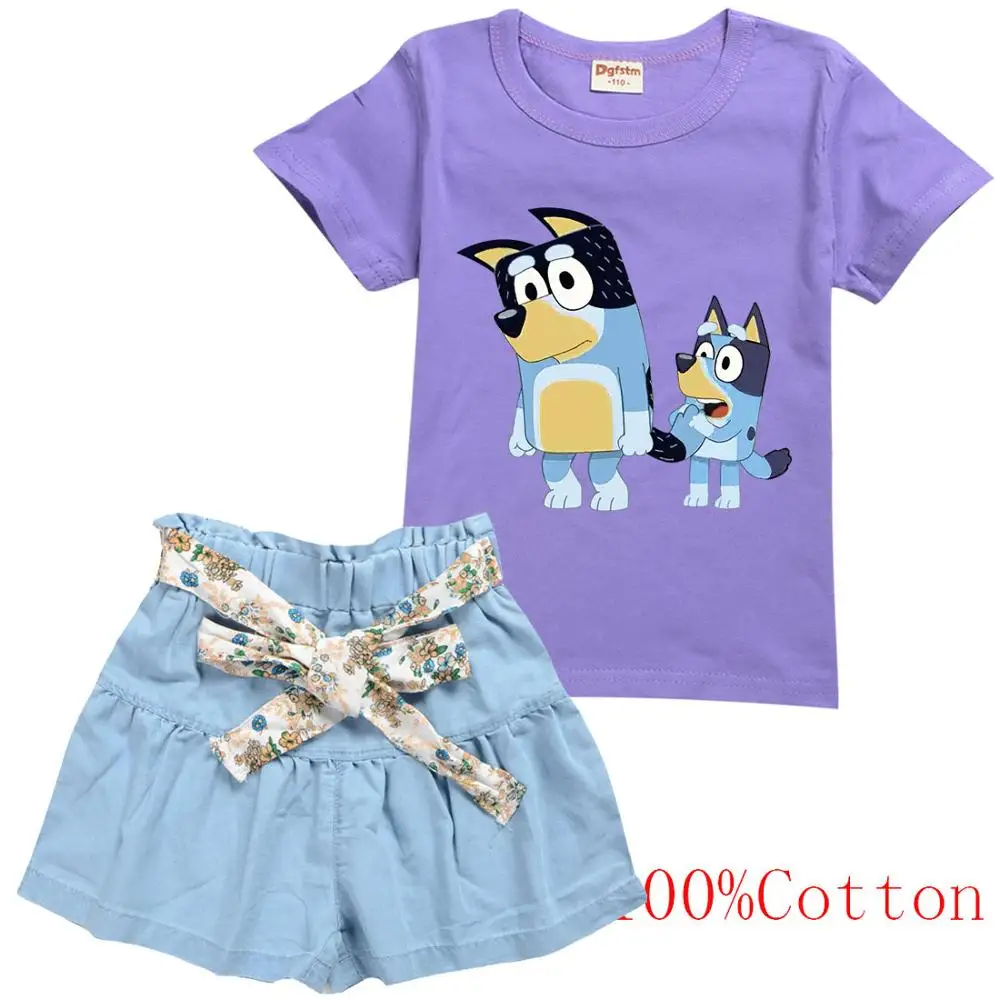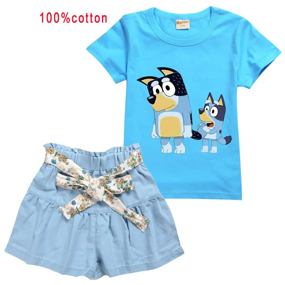 Комплект летней одежды для маленьких девочек в стиле бинго bluey, милые платья для детской вечеринки с рисунком, футболка и юбка