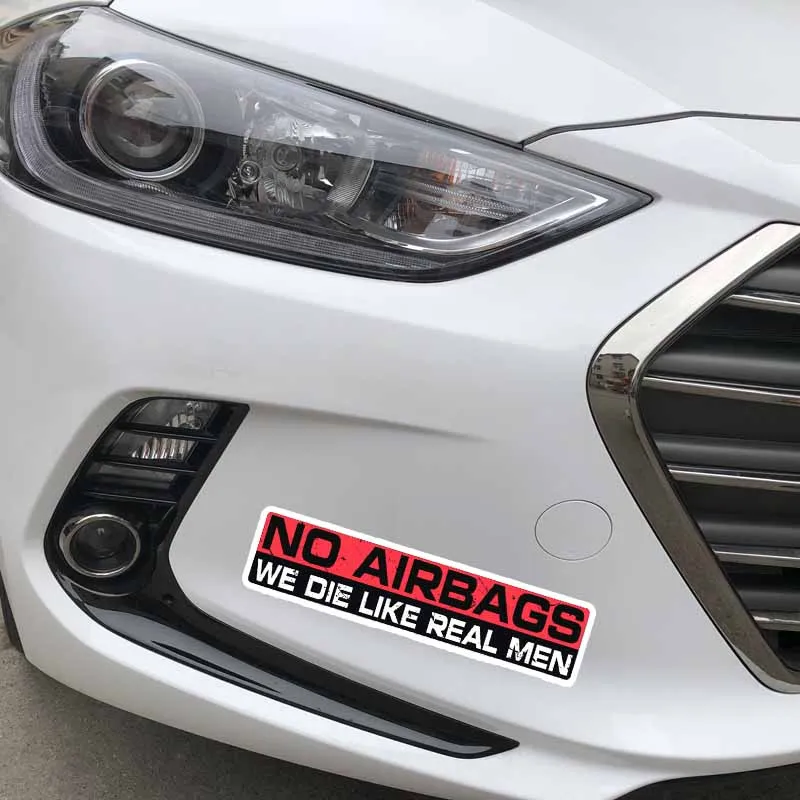Предупреждение ющая Автомобильная наклейка, без подушек безопасности, мы умираем, как настоящие мужские автомобильные виниловые солнцезащитные аксессуары для стайлинга автомобиля, декоративные ПВХ 10 см * 2 см