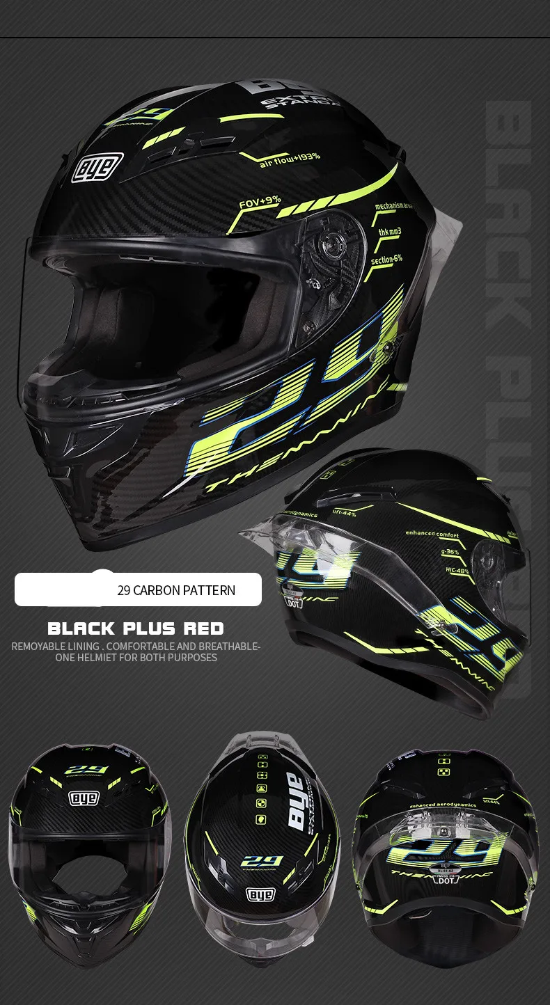 Мотоциклетный шлем на все лицо, гоночный шлем из углеродного волокн...
