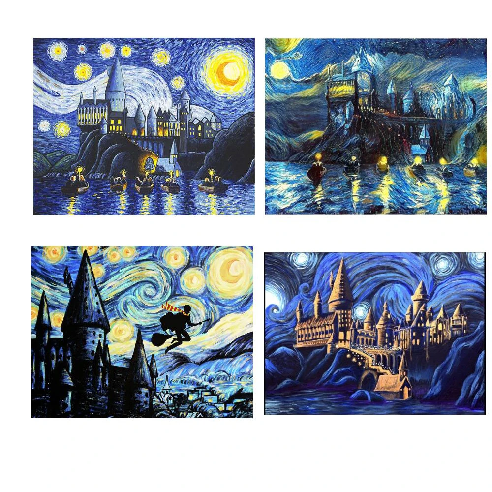 5D алмазная живопись, знаменитая живопись, звездное небо, полностью Алмазная вышивка сделай сам, алмазная вышивка Замок, вышивка крестиком, круглая картина
