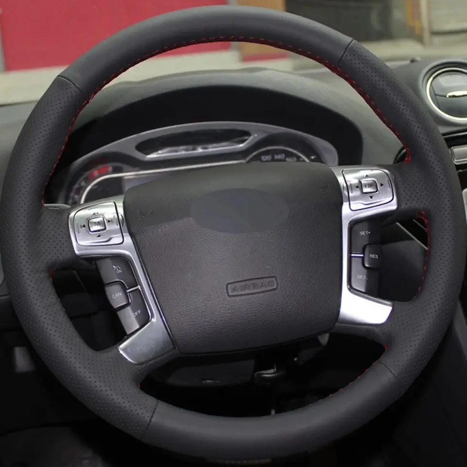Ручная прострочка мягкая черная искусственная кожа Чехол рулевого колеса автомобиля для Ford Mondeo Mk4 2007-2012 S-Max 2008