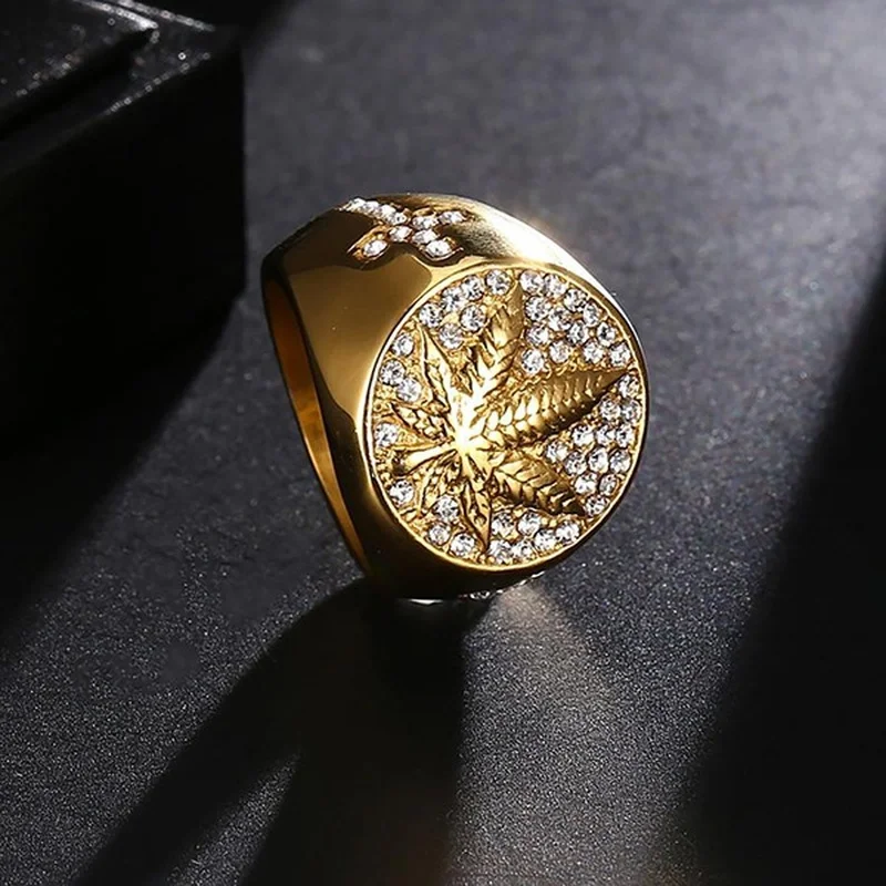 Модное кольцо в виде клена с микро-инкрустацией из циркона, мужское...