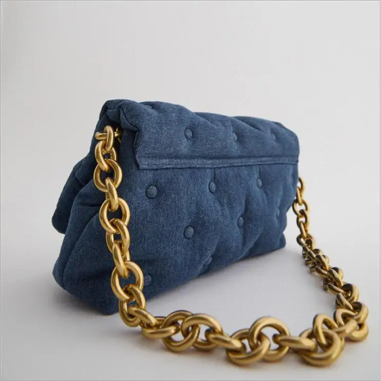 Сумка-мессенджер женская джинсовая, на толстой цепочке, 2020