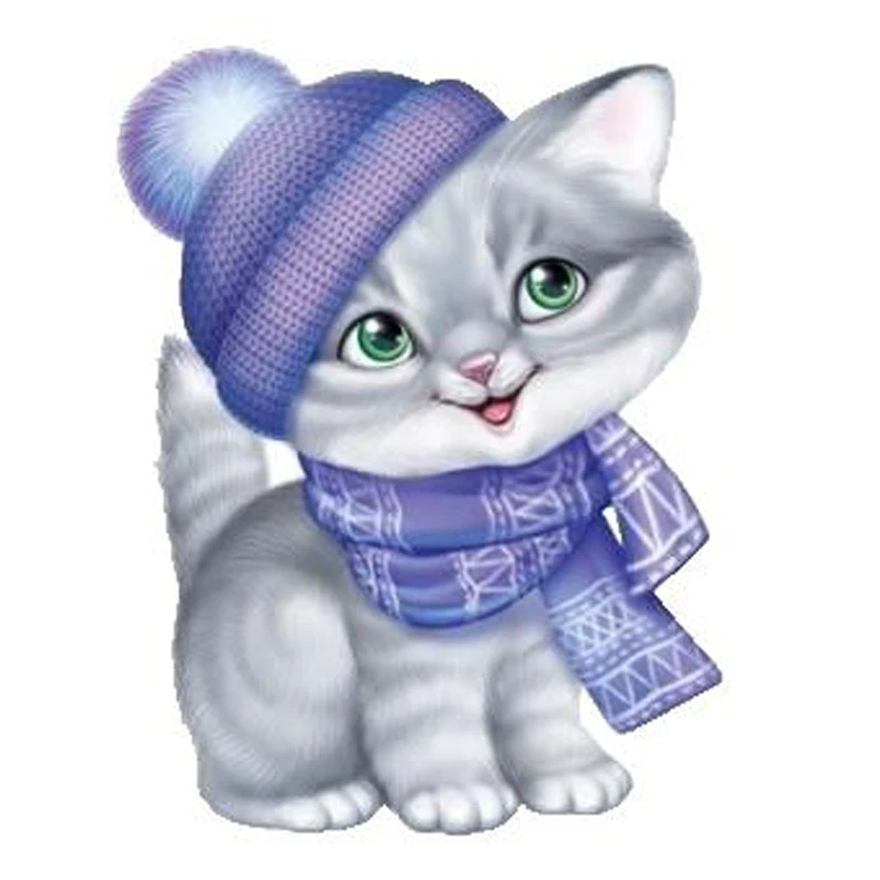 Мультяшная кошка в шляпе, сделай сам, алмазная живопись, милая кошка в шарфе, алмазная вышивка, вышивка крестиком, кошка стразы, мозаичная живопись