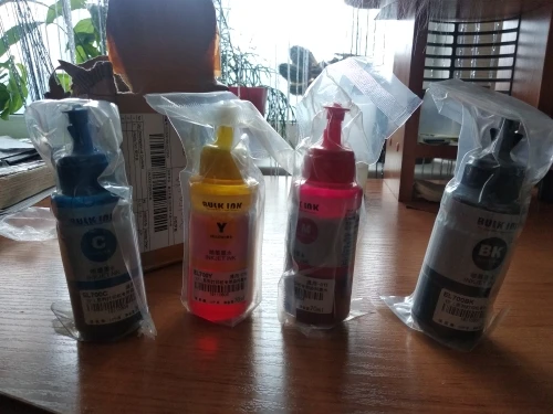Вид бутылочек (информация на них) отличается от фото для заказа. Это меня ввёло в замешательство. При переписке с продавцом, он заверил, что такие чернила подойдут для Epson 355, но у меня всё ещё остаётся сомнение. Слишком чувствительная разница.