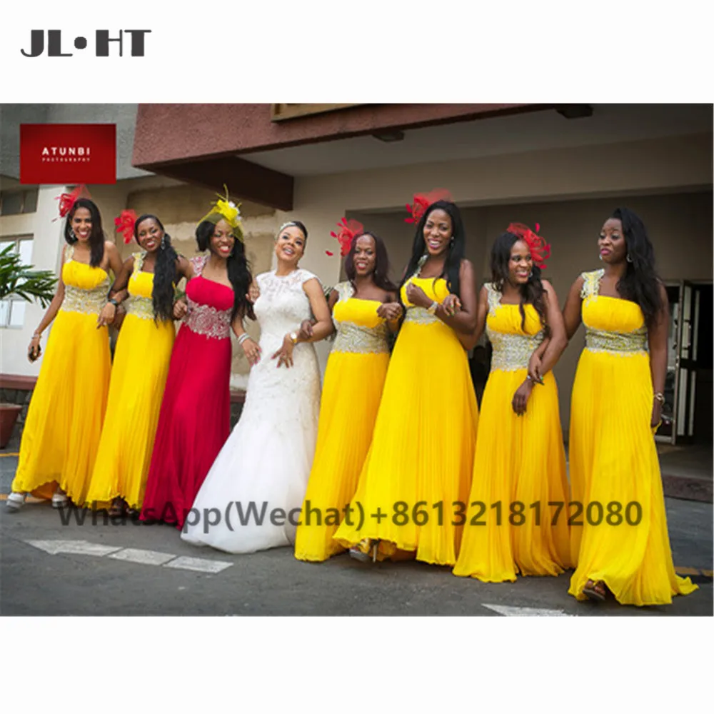 Африканское желтое платье подружки невесты на одно плечо 2021, кружевное шифоновое черное платье для девушек невесты на свадьбу, вечеринку, платье для женщин