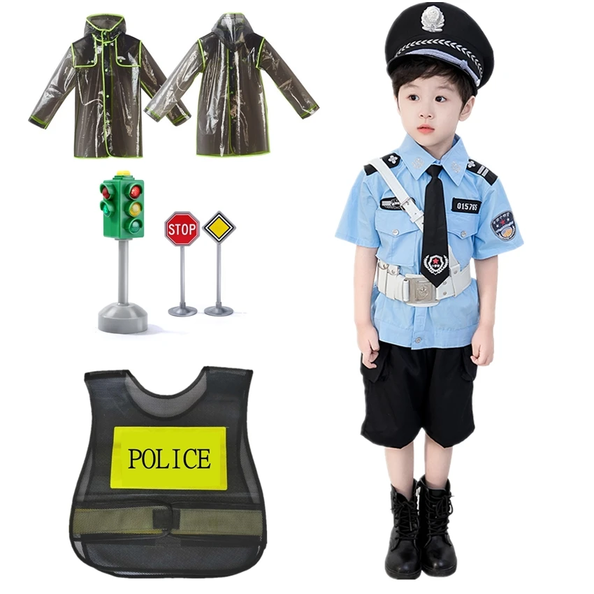 Рождественский подарок, Детский костюм для косплея, полицейская форма, полицейский жилет, топ, светофорный плащ, дождевик для девочек и мальчиков, для Хэллоуина, карнавала Вечерние