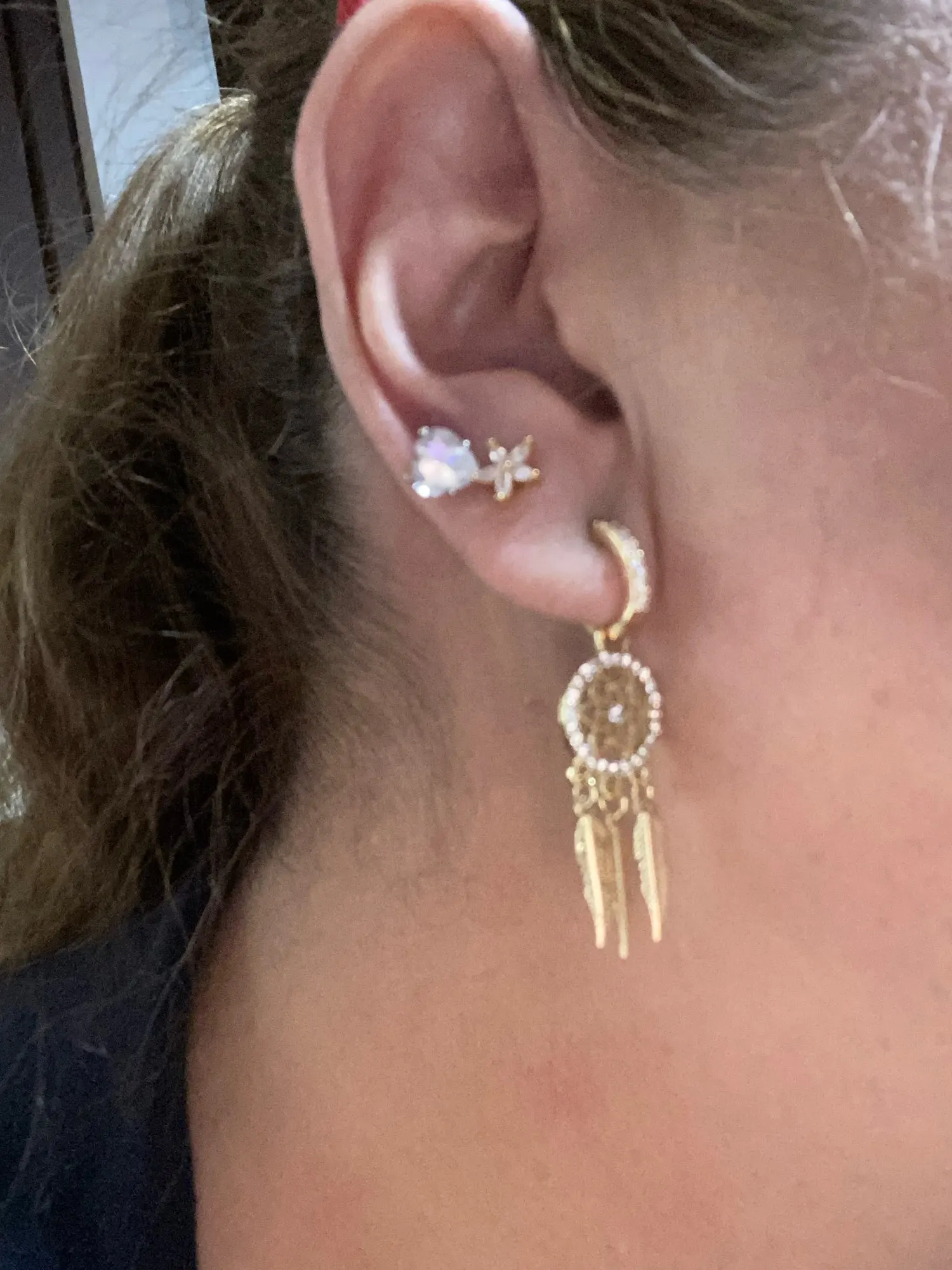 Серьги-подвески с блестящими кристаллами женские, изящные висячие украшения в Корейском стиле, Ловец снов, лист, перо, Висячие ювелирные изделия для ушей, вечерняя бижутерия