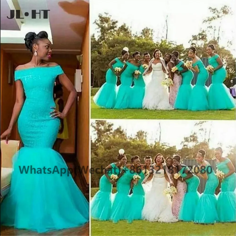 Африканское платье для подружки невесты Aqua 2021, Черное длинное Тюлевое платье с открытыми плечами для свадебной вечеринки, платье для подружки невесты для женщин