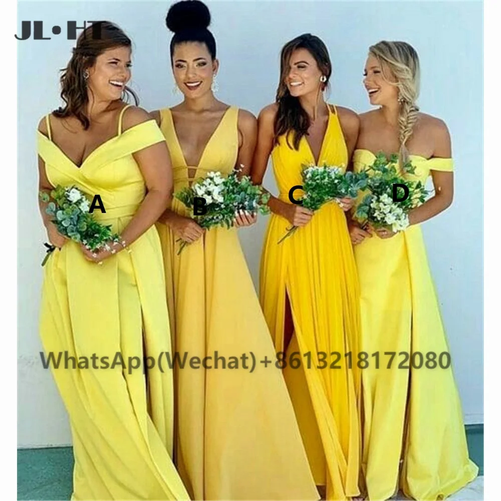 Африканское шелковое атласное платье подружки невесты с разрезом, желтый и черный цвета, модель 2021 года