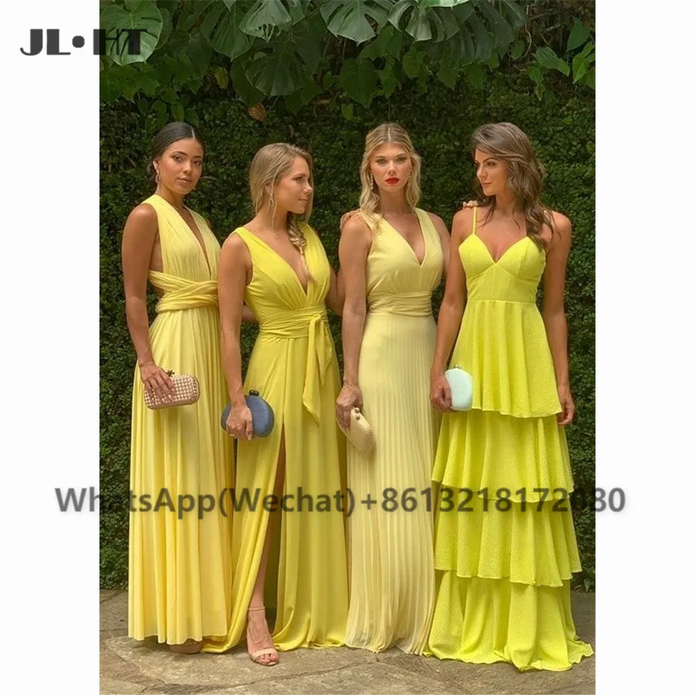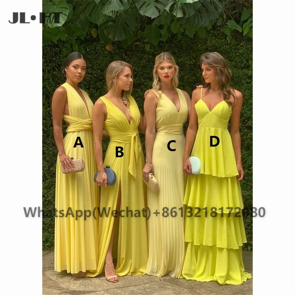2021 желтые платья подружек невесты плиссированное платье ABCD с глубоким V-образным вырезом, шифоновое черное свадебное платье подружки невесты для девушек