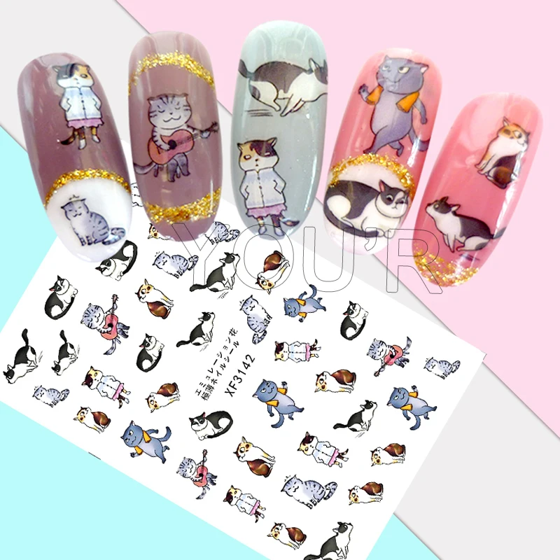 Набор стикеров для нейл-арта с мультяшным котом, клейкие наклейки д...