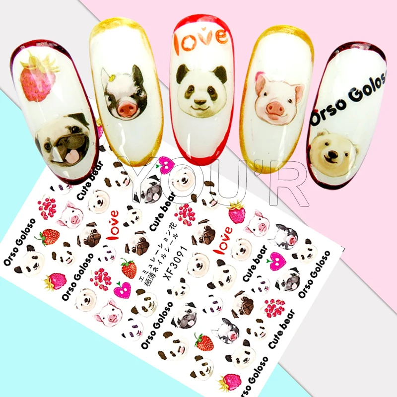 Мультяшный дизайн сделай сам, наклейки для ногтей с медведем, накле...