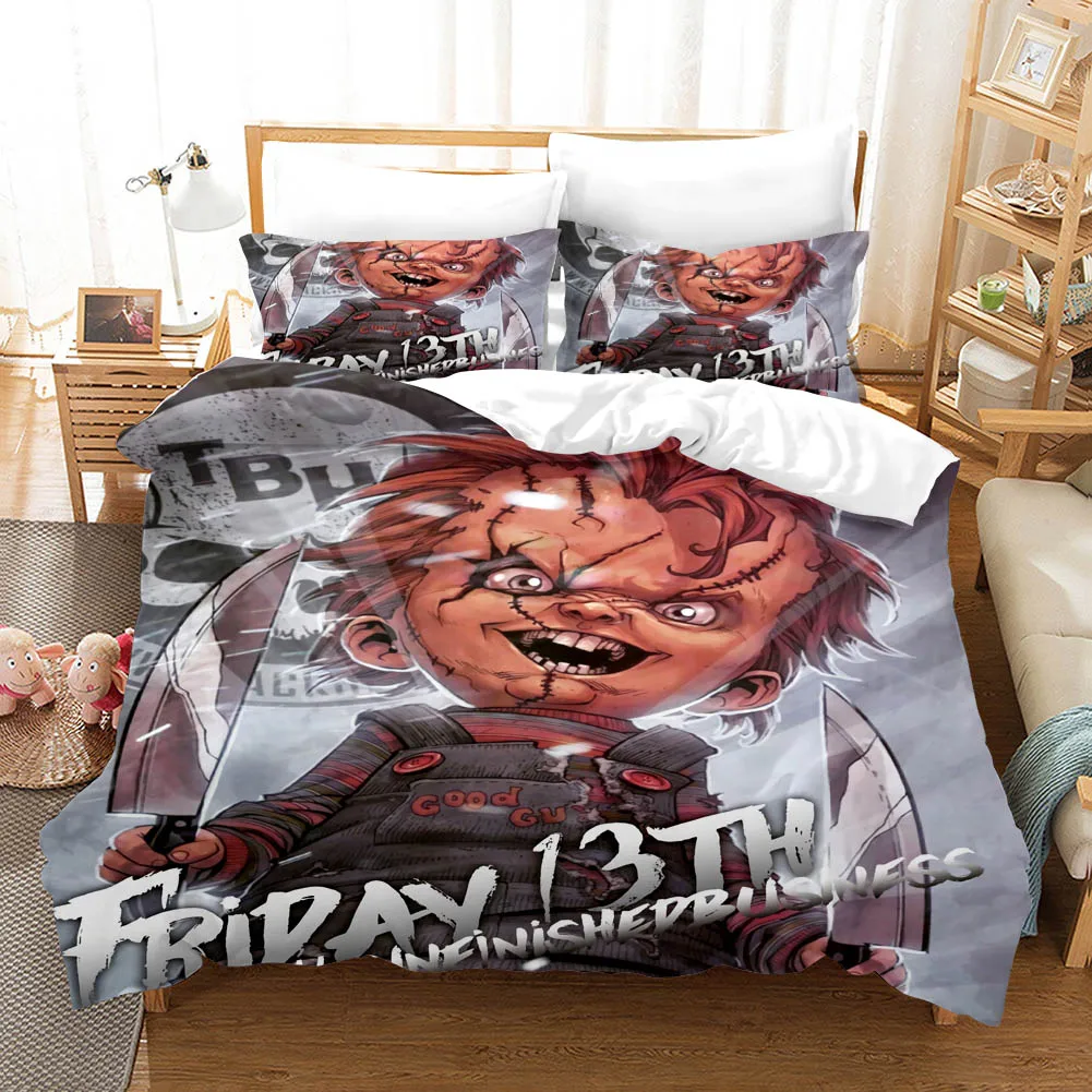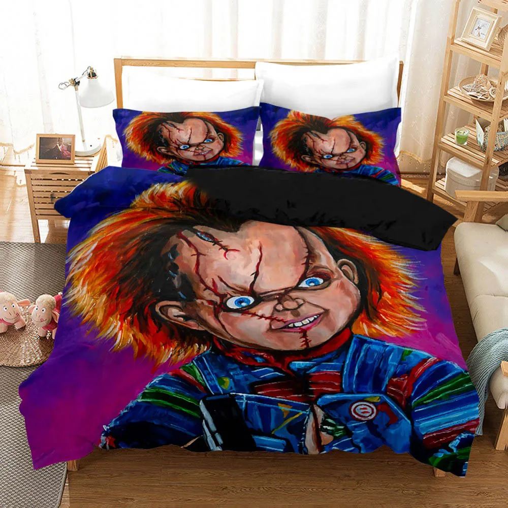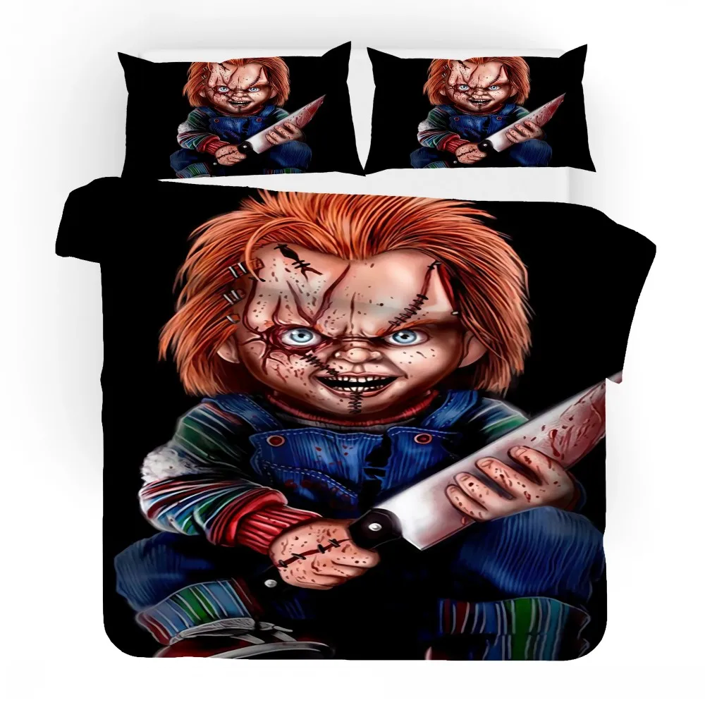 Комплект постельного белья с рисунком ужасов из фильма «ребенок игры», Чаки, кукла-кукла большого размера, пододеяльник, одеяла, черное постельное белье для дома