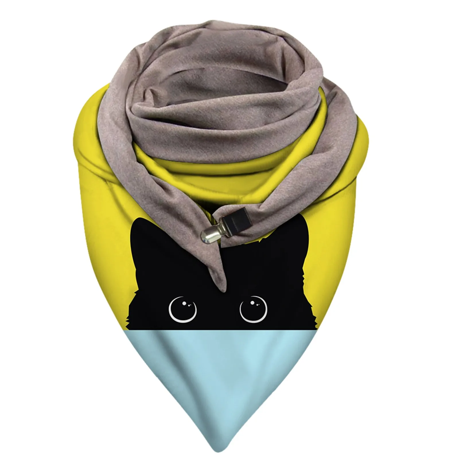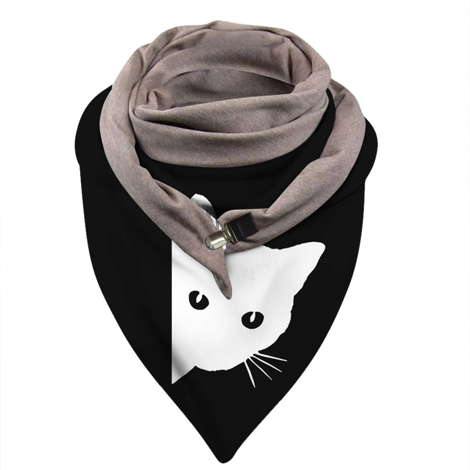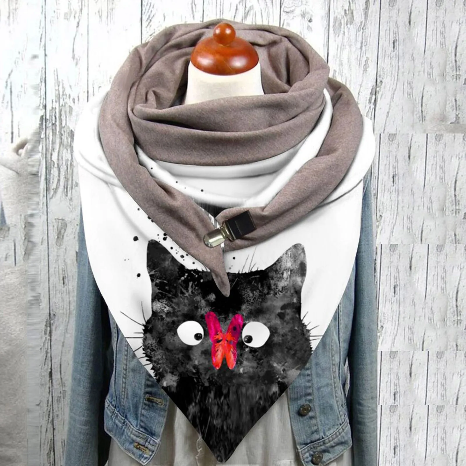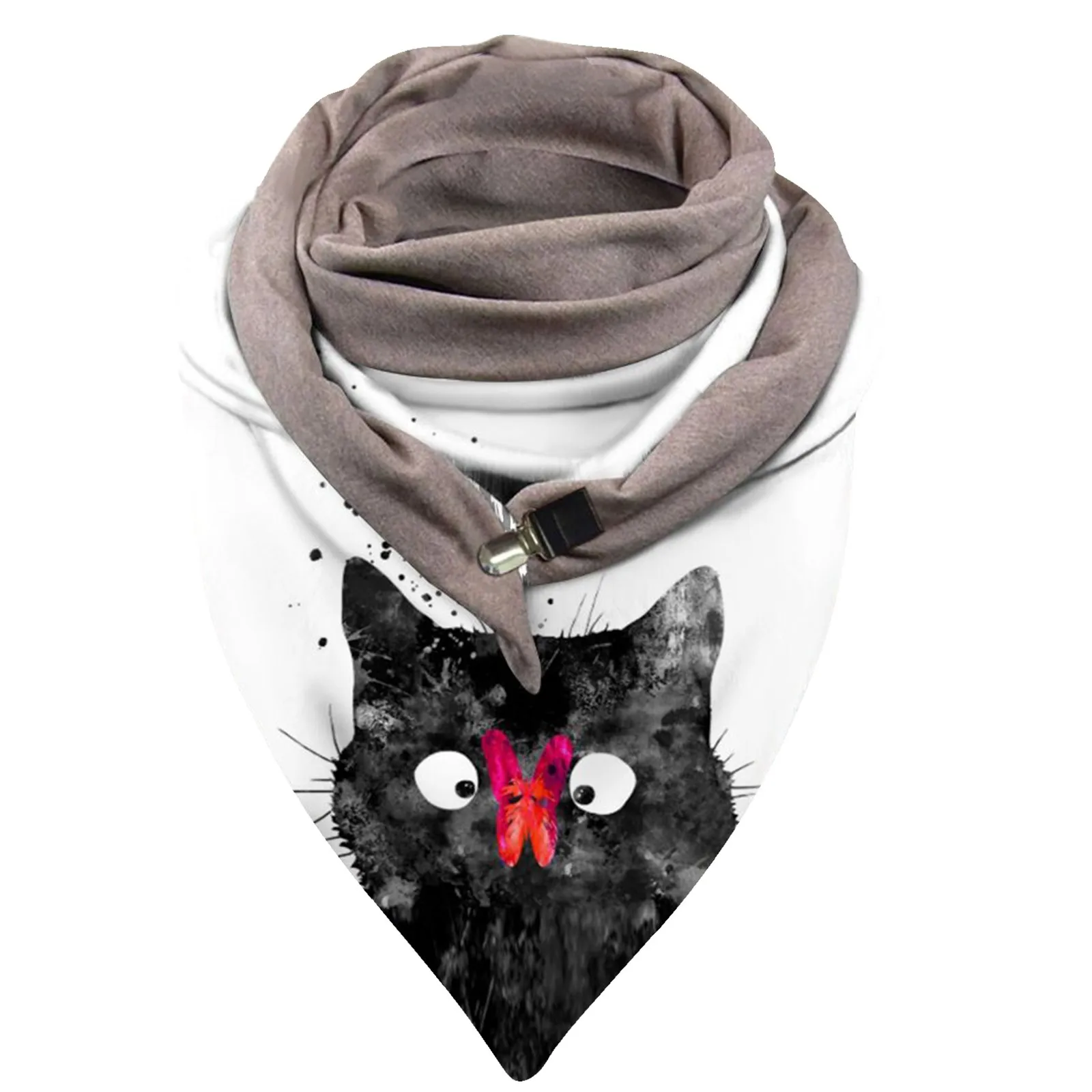 Шарфы с принтом кота, двухслойный шарф с пряжкой, зимний кашемировый шарф, женские толстые теплые мягкие шарфы, шали, модная женская шаль, Лидер продаж