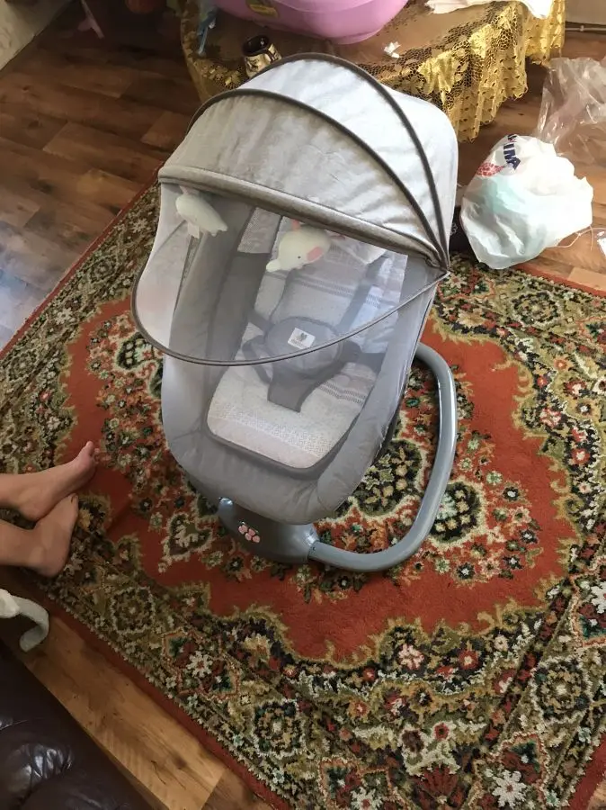 До Екб ехал 2 месяца, но с доставкой до двери. Цвет был заказан кофе, но пришел серый, однако это меня не сильно смутило, даже подошел больше к интерьеру. У колыбельки есть ключ, который блокирует движение-качание, у нас он оказался сломан (качелька не качалась, слышно было, как механизм пытается совершать движения, но что-то ему мешает), думала писать возврат или что-то там еще, но с мужем покрутили, потрясли, и стало работать. Качество китайское, за такие деньги ожидала лучшего. Да, хорошо, что есть металлические элементы, но частично пластик - подрывает доверие. Не сразу разобрались, как питать от провода. Если кому-то поможет -- то вход внизу задней части пластикового основания. Его сразу не разглядеть, т.к. чуть выше четыре точно таких же отверстия под шурупы.