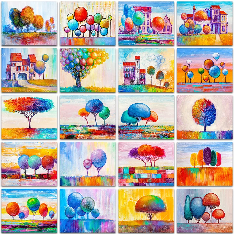 5D алмазная живопись, красочный пейзаж, дерево, дом, шары, радуга, полная вышивка, мозаика, вышивка крестиком, домашний декор