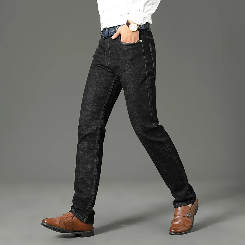 Новинка 2021, мужские Модные джинсы, деловые повседневные Стрейчевые зауженные джинсы, классические брюки, джинсовые брюки для мужчин, черные, синие, серые
