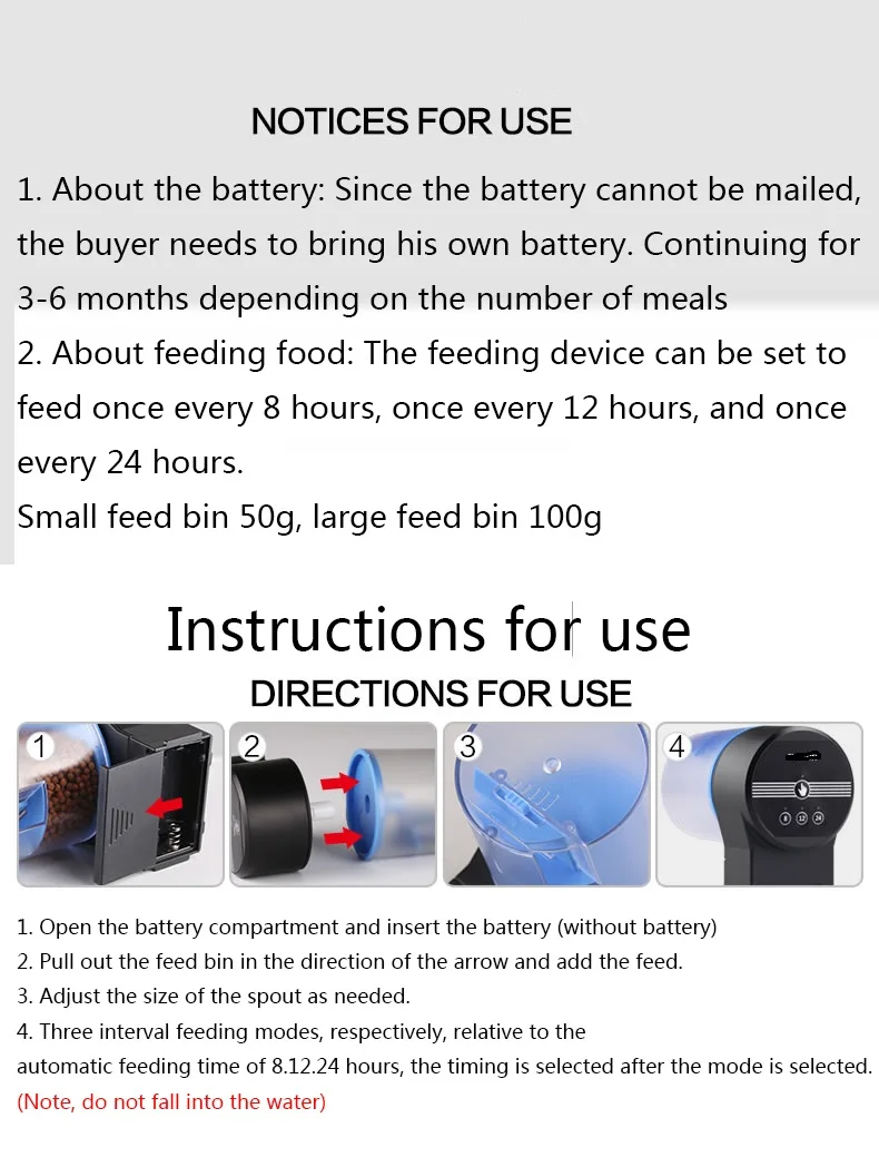 Большой пищевой контейнер (емкость: 0.2lb): 2 грамма каждый раз, три раза в день, вы можете кормить 25 дней