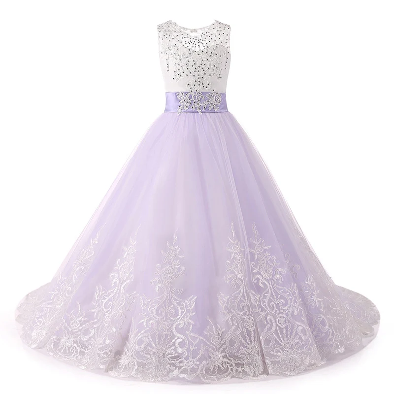 LEOSOXS, высококачественные платья для девочек с цветами, модные элегантные детские кружевные платья с длинным швом без рукавов, украшения для свадьбы