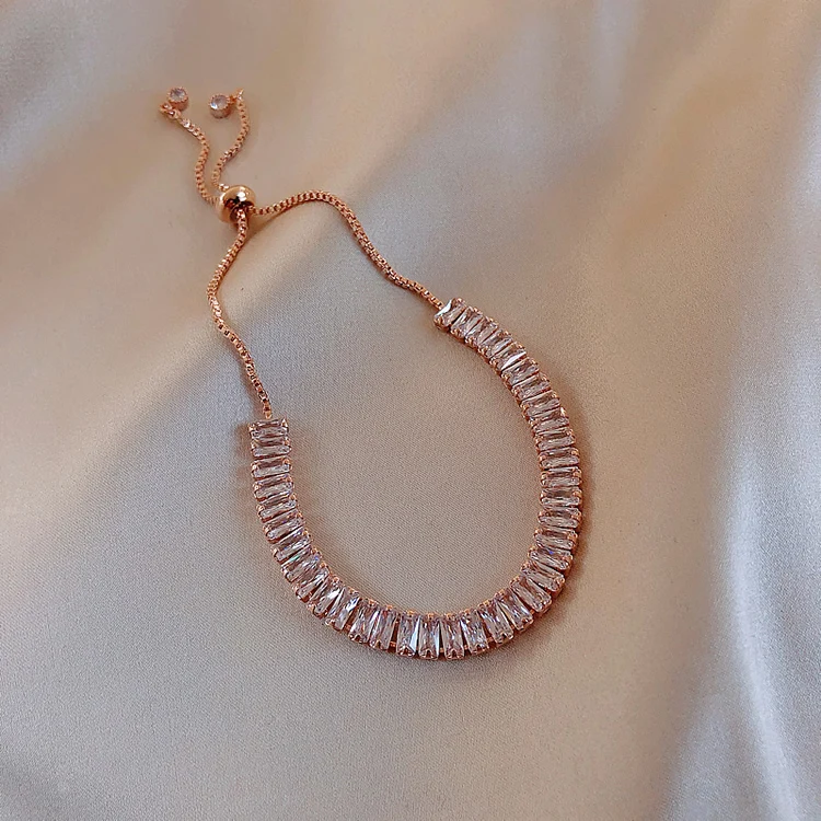 Модные ювелирные изделия, роскошный блестящий медный браслет с полным цирконием, Корейская версия может растягиваться и регулировать Женский Повседневный Браслет