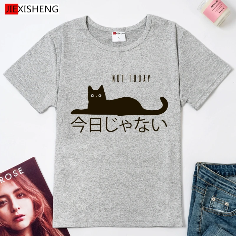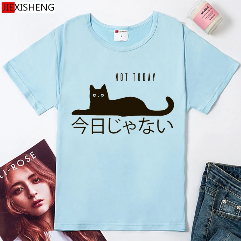 Японский Стиль кошка не сегодня женская футболка размера плюс с коротким рукавом, с круглой горловиной, с принтом женская футболка летние повседневные Модные топы