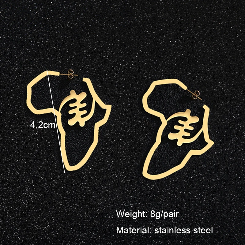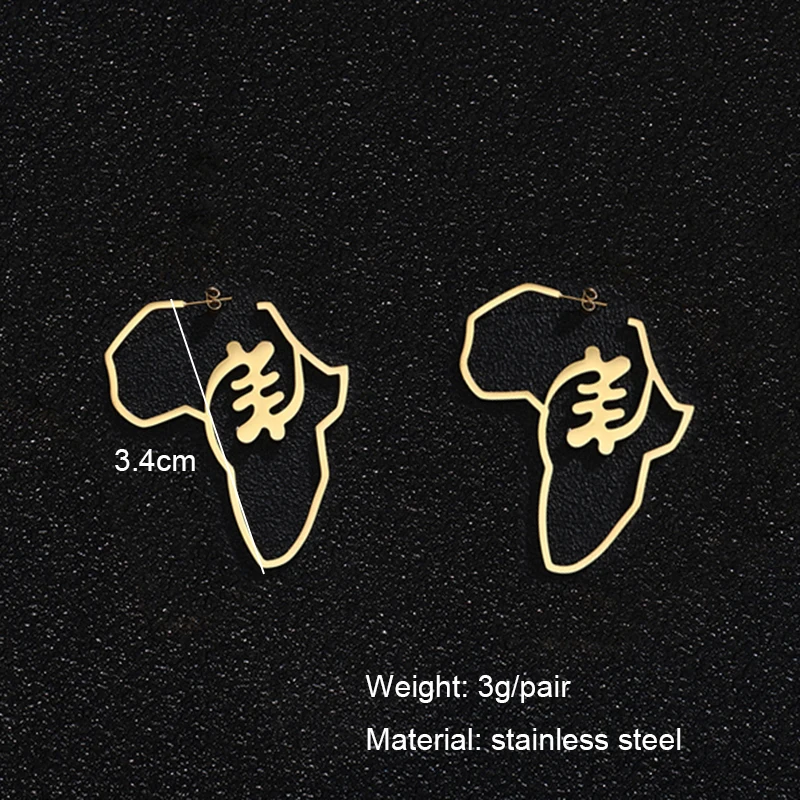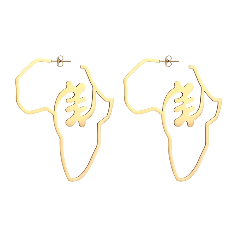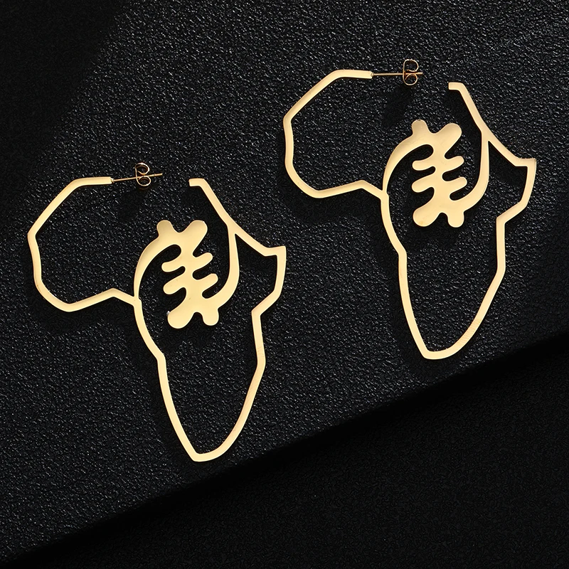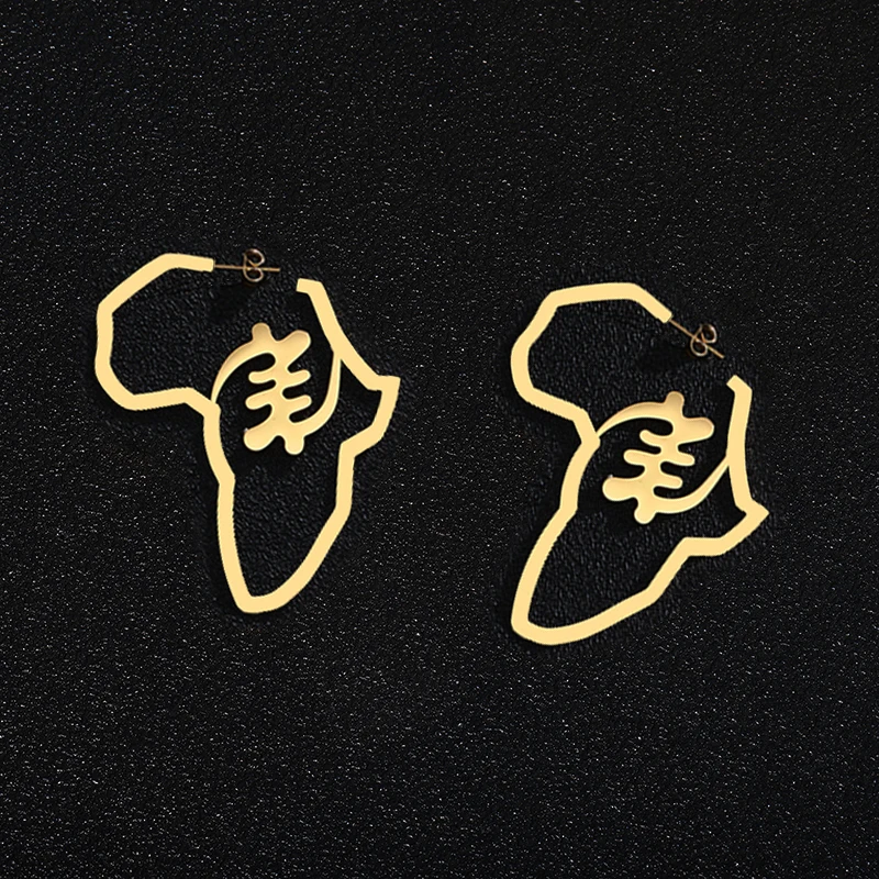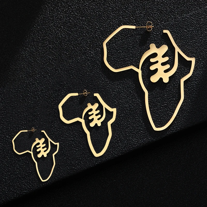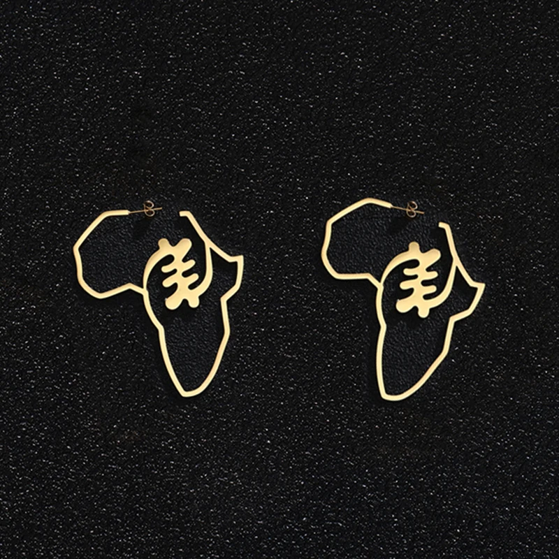 Большие серьги с картой Африки, золотые серьги-гвоздики из нержавеющей стали Adinkra GYE Nyame, символ Ганы, этнические украшения, подарок
