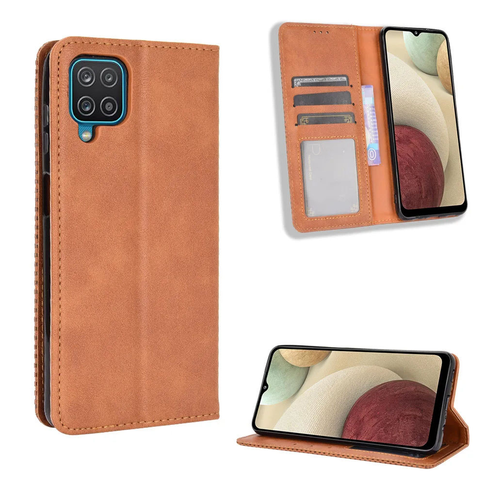 Роскошный тонкий кожаный чехол-книжка в стиле ретро для Samsung Galaxy A12, чехол-кошелек с подставкой, Магнитный чехол-книжка для Samsung M12 SM-A125F
