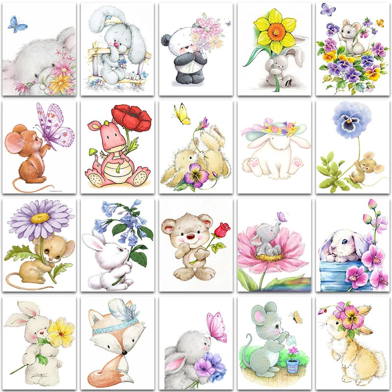 Набор для алмазной живописи 5D сделай сам, картина с мультяшными животными, пандой, Кроликом, лисой, бабочкой, полная вышивка квадратными и круглыми стразами, вышивка крестиком