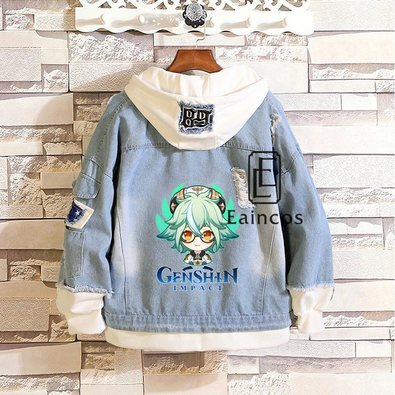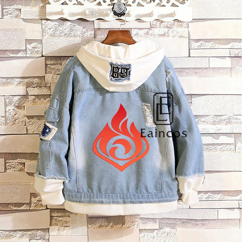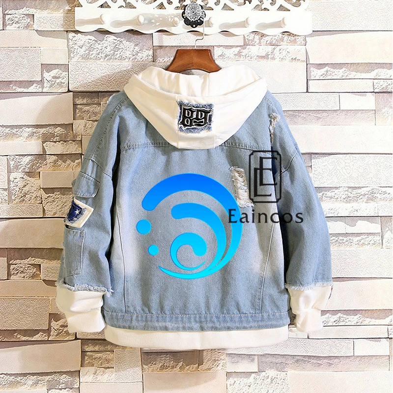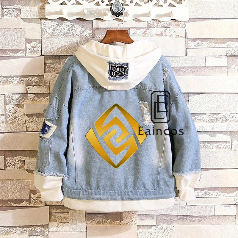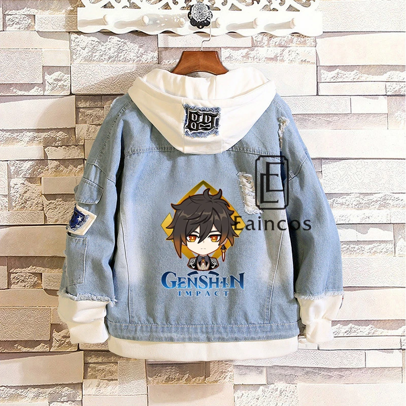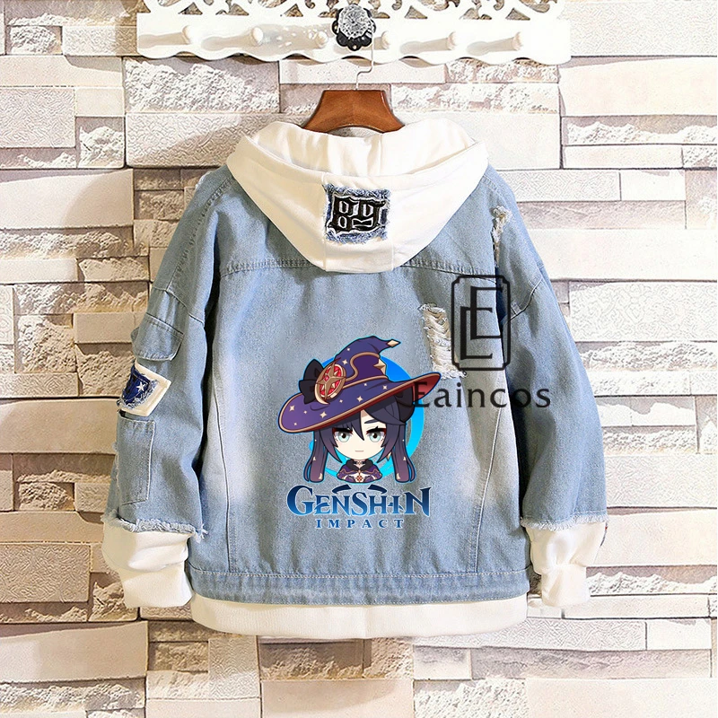 Джинсовая Толстовка Genshin Impact Venti suевропейская Мона Qiqi Zhongli Klee, для косплея, мужская, женская, повседневная, с капюшоном, верхняя одежда, куртка