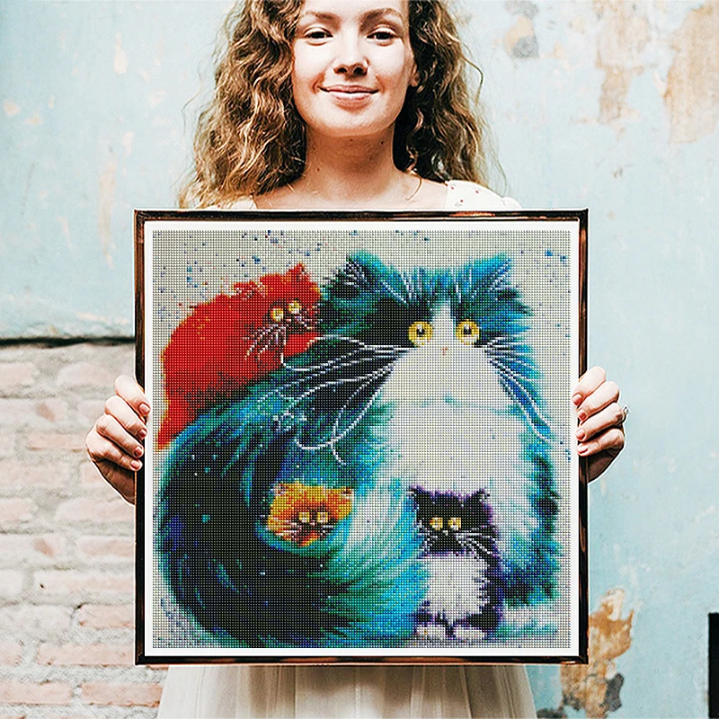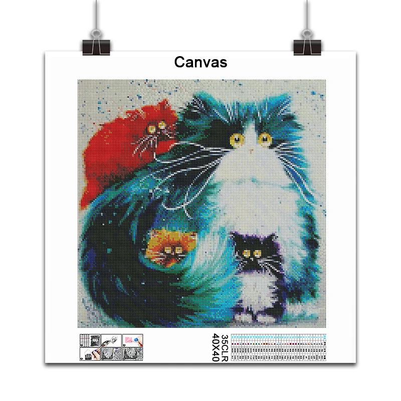 Алмазная вышивка, мозаика, вышивка крестиком, животное, кошка, буль...