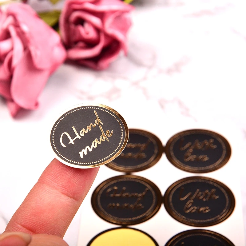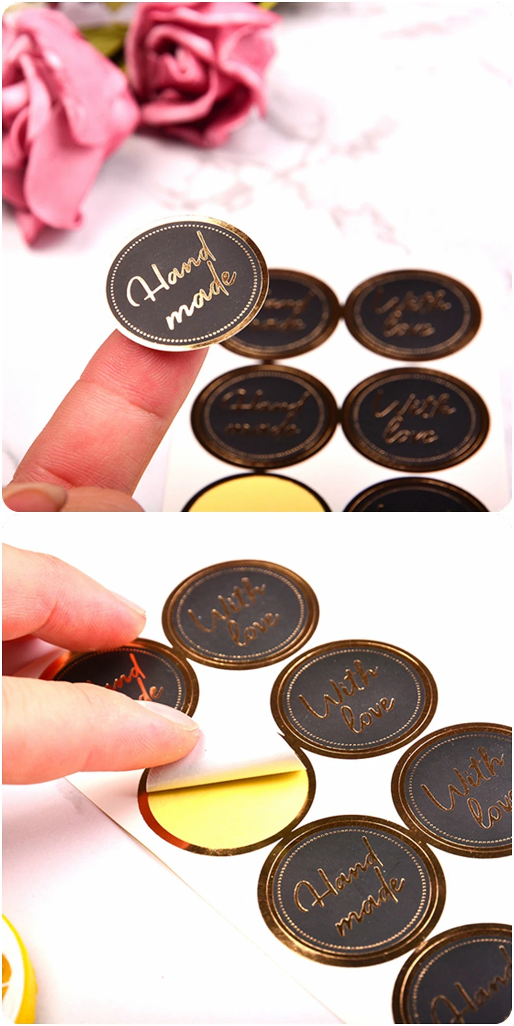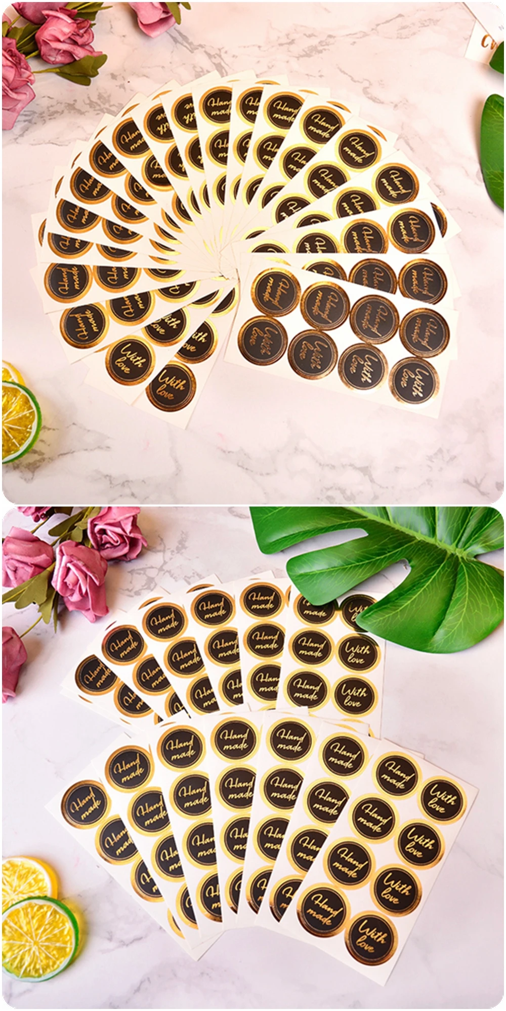 Самоклеящиеся наклейки ручной работы, черные, золотые, крафтовые этикетки, наклейки сделай сам, бумажные бирки для подарка, торта, конфет, 80 шт.лот