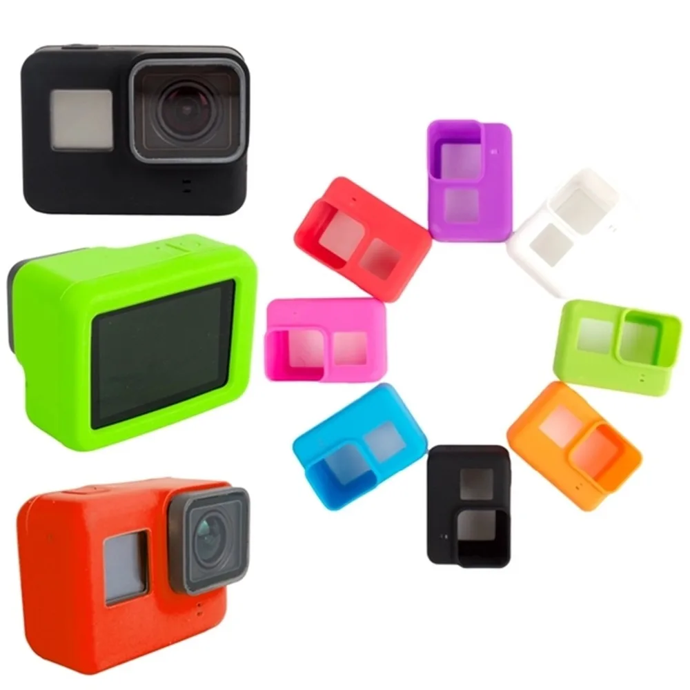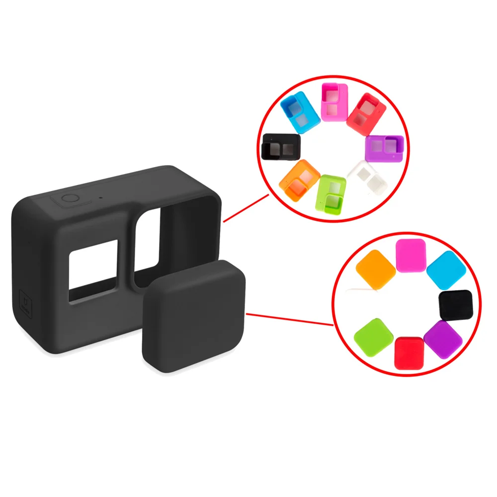 Силиконовый чехол для камеры + Крышка для объектива GoPro Hero 5, 6, 7, черный защитный чехол с рамкой для экшн-камеры GoPro Hero 5, 7